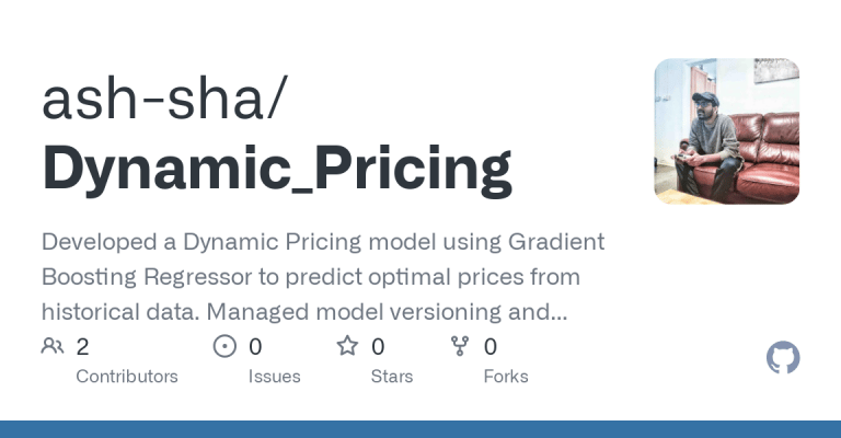 Dynamic Pricing model using Gradient Boosting Regressor to predict optimal prices from historical data. Model versioning and deployment with MLflow, integrating batch and real-time inference pipelines. GitHub Actions for CI/CD, automating model training, logging, and updates for seamless predictions.